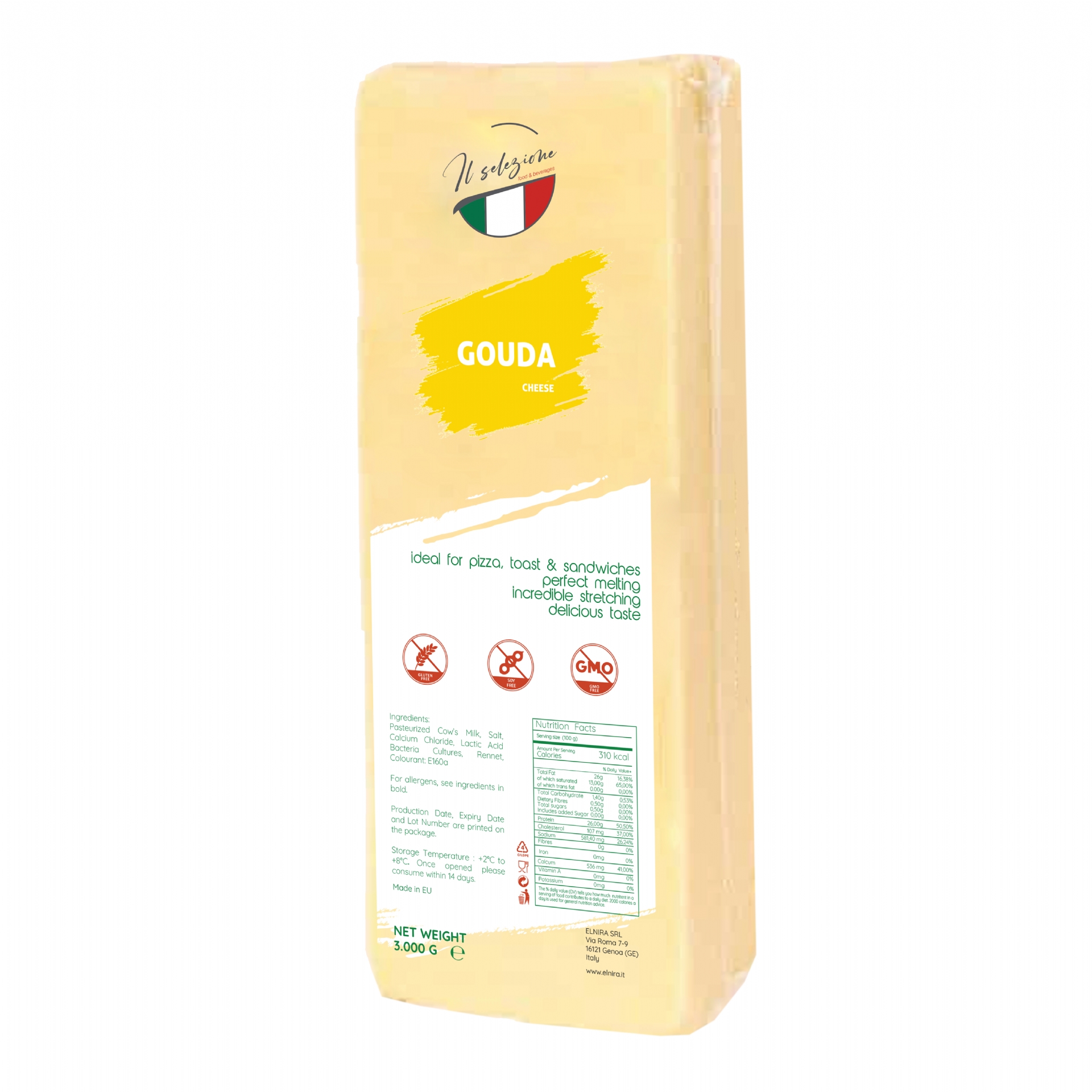 Delicious Block Gouda Cheese made with %100 Milk and Milk Fat.
