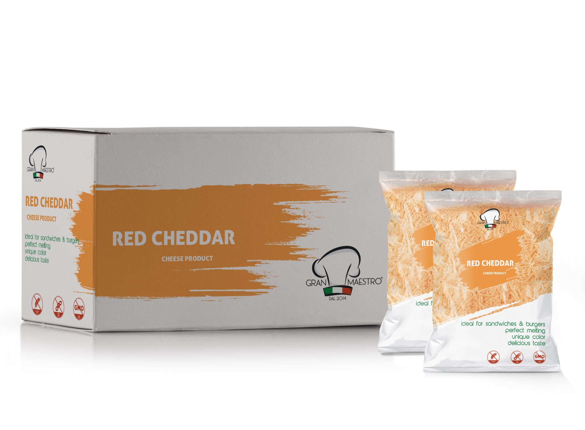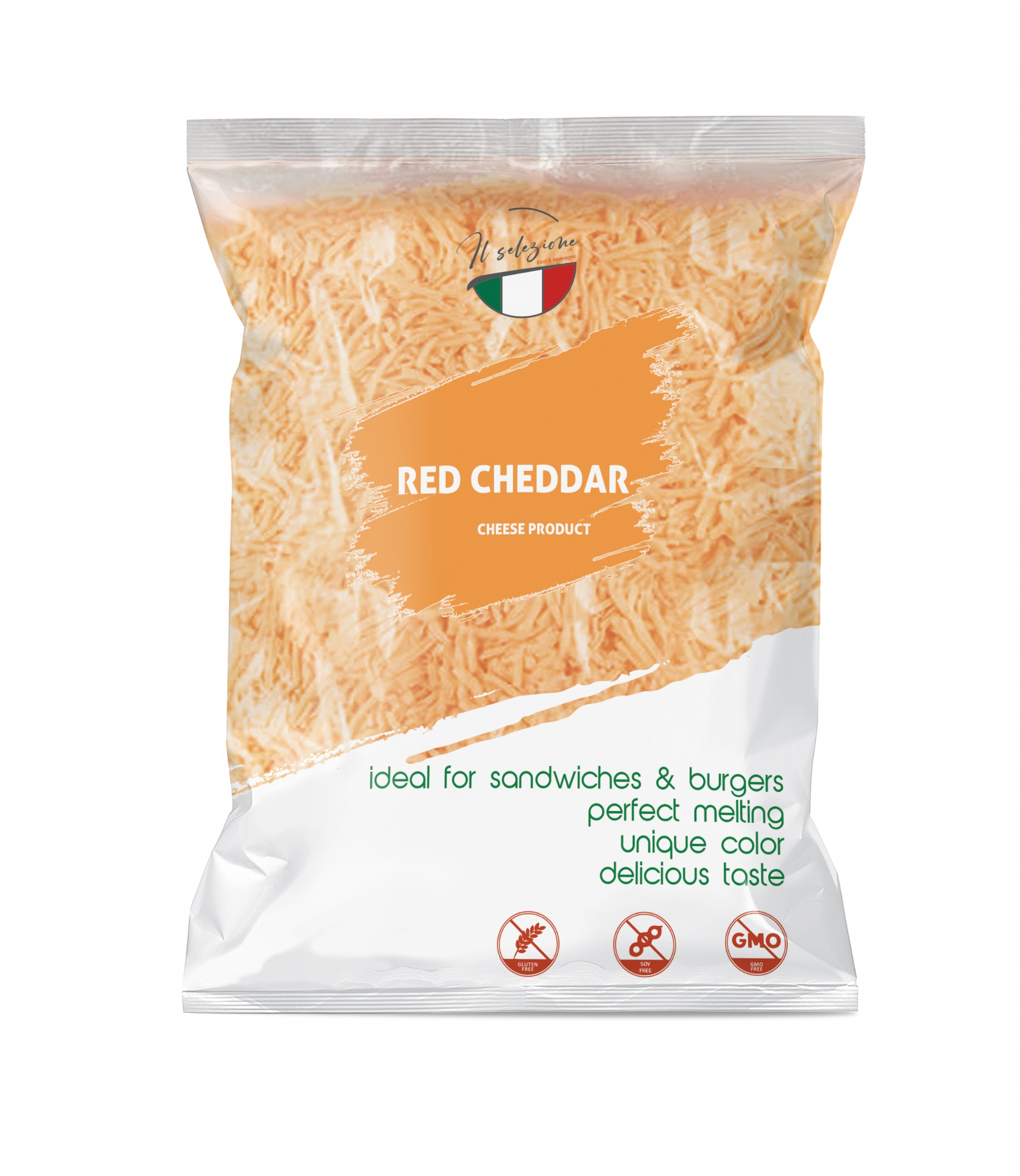 Delicious Shredded Analogue Red Cheddar Cheese made with %100 Milk and Vegetable Fat.